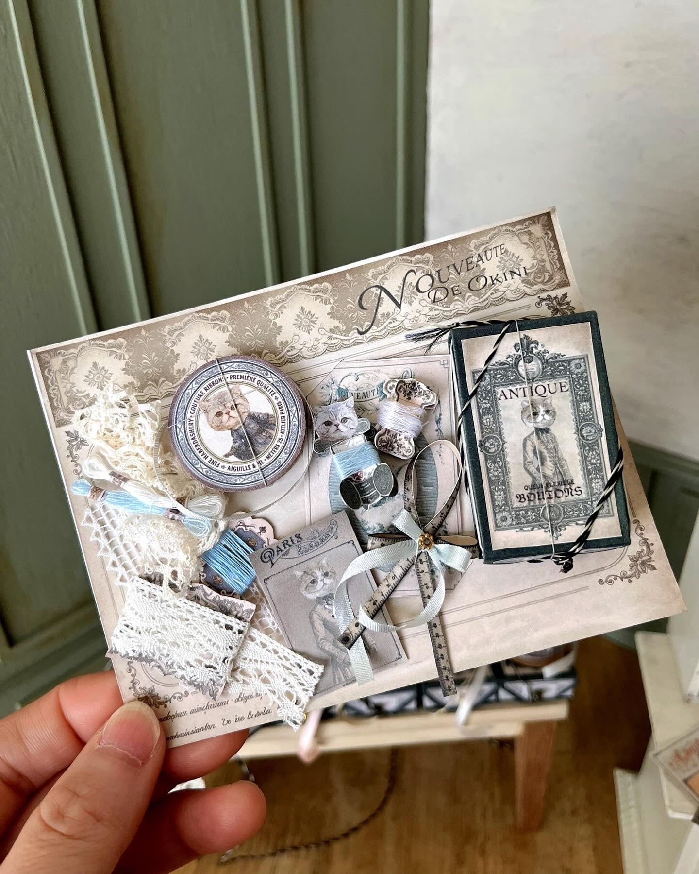 ボタンBOX、リボン巻き、コレクションシート、糸巻きなどのセットです。