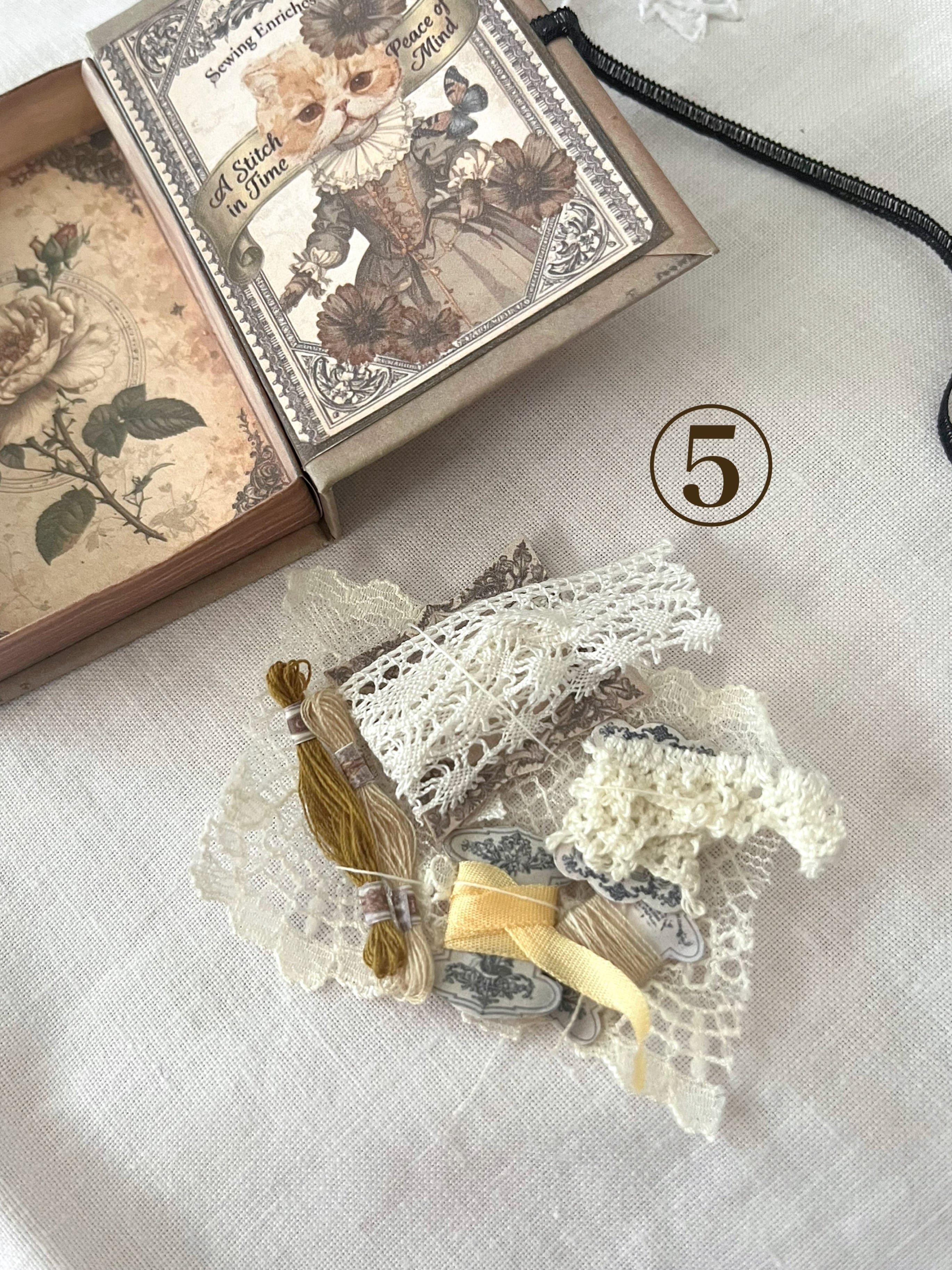 中に入っている小物はレースに縫い付けてありますがほどいてバラして使っていただいても、そのまま使っていただいても大丈夫です。