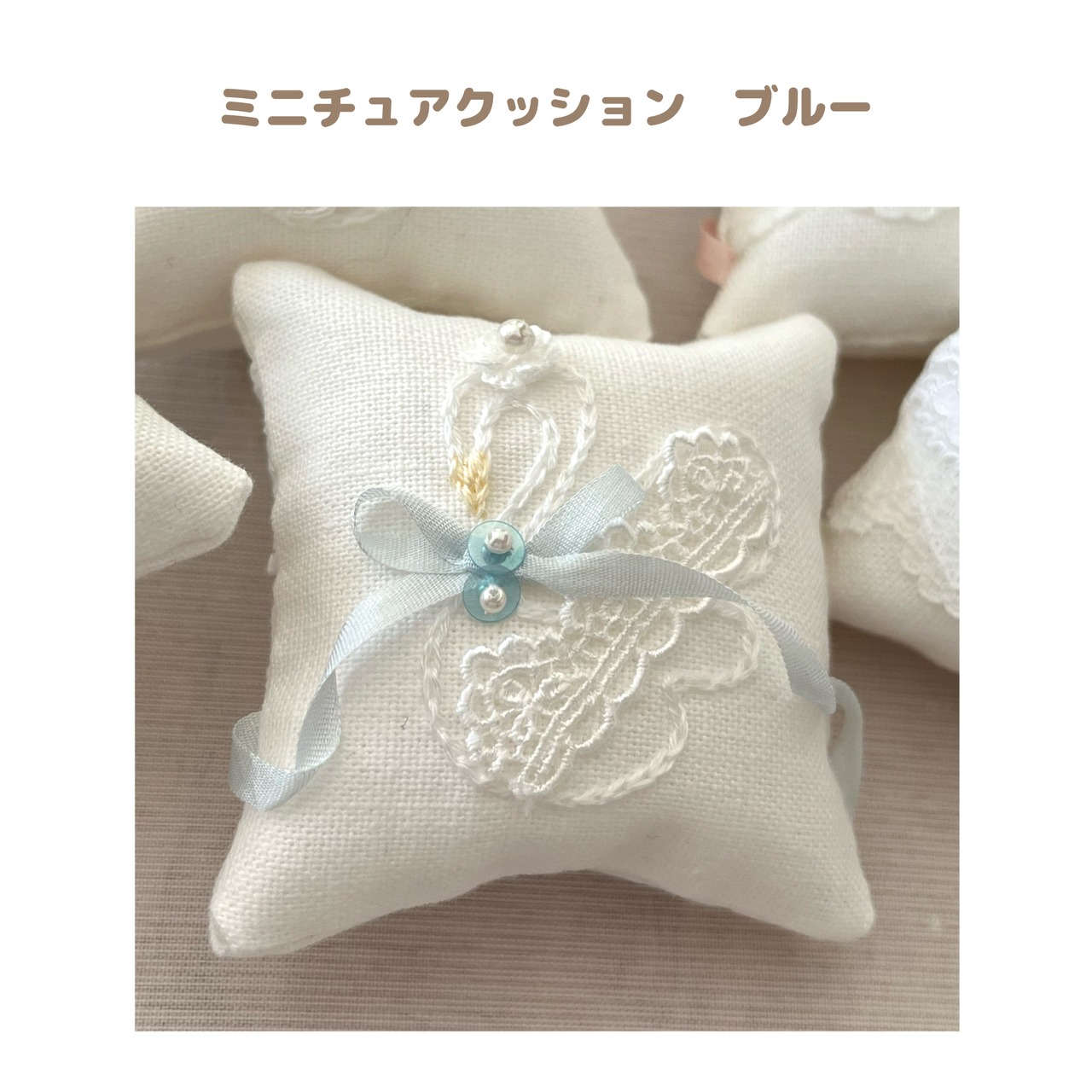 約6.5×6.5cmのミニチュアクッションです。