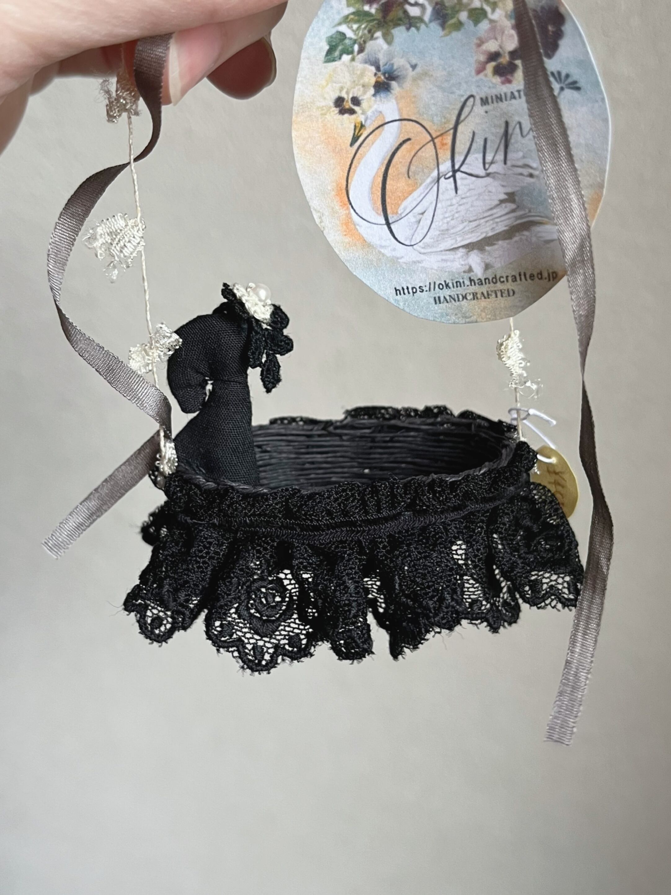 紙巻針金で編んだかごにデコレーションしましたスワンモチーフのかごです。